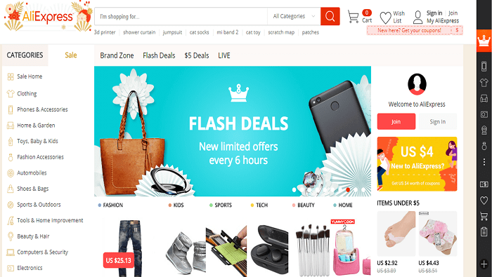 - AliExpress – cutting out the middle-man means low, low prices