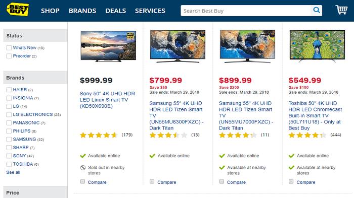 BestBuy.com is an online marketplace for finding great deals on electronics, especially desktop computers, laptops, televisions, video games, and appliances. With BestBuy’s lowest price guarantee and free shipping, your online experience should be seamless. You can also reserve items online when they are in stock, and then go and pick them up at your local BestBuy store! BestBuy also makes returning items much easier than with sites like eBay and Amazon; simply fill out the online form, and never worry about paying re-stocking fees!