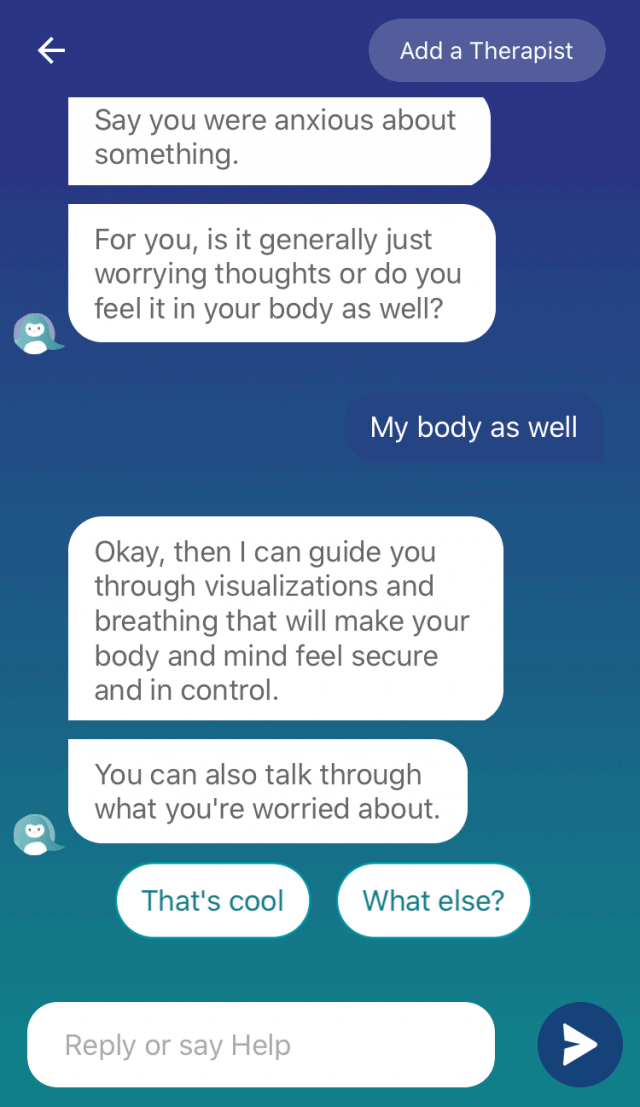 Wysa is a chatbot designed to help users discuss their emotions. The app’s technology uses AI that helps users find the best techniques to help them cope. It also offers upgrades so users can connect with a real human coach if they need additional help.