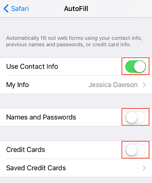 2. Turn off auto-fill settings on your iPhone/iPad so your personal information won’t be saved to your browser.