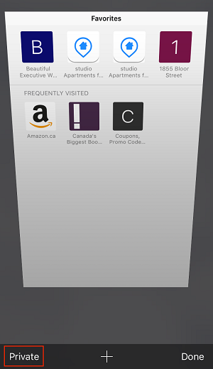 6. To return to your normal browser, tap the square button and Private again.