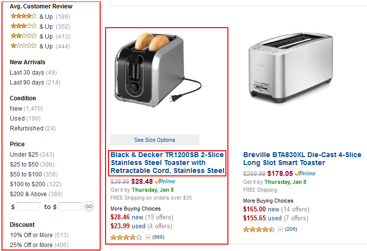 Now, let’s click on Ovens and Toasters, and then click Toasters, just to narrow things down a bit more.