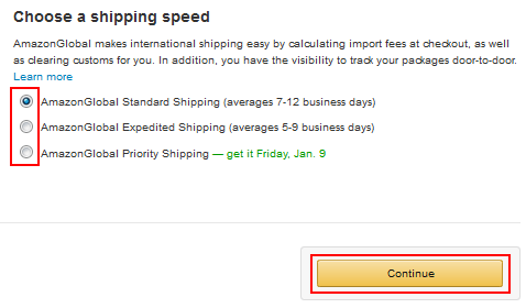 On the left, you’ll see your order summary. On the right, you’ll be asked to select what kind of shipping you want (if applicable). Click the button next to the type you want. Usually, the faster the shipping speed, the more it will cost you. When you’re done, click Continue.