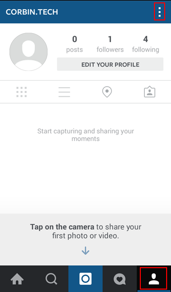 2. Tap the Profile icon in the bottom-right corner, and then tap the three white dots in the top-right corner.
