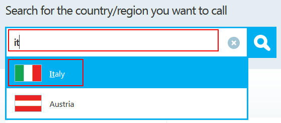 2. Click inside the box labeled "Search for the Country/Region You Want to Call" and type in the place that you're going to be calling from Skype most often. Then, click one of the suggestions that appears in the drop-down box to select it.