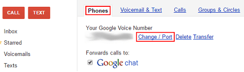Click the Phones tab (if you aren’t in that section already), and then click Change/Port beside your current Google Voice number.