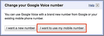 A box will pop up asking if you want to simply change your Google Voice number, or else transfer your mobile phone number over. Click I Want to Use My Mobile Number.