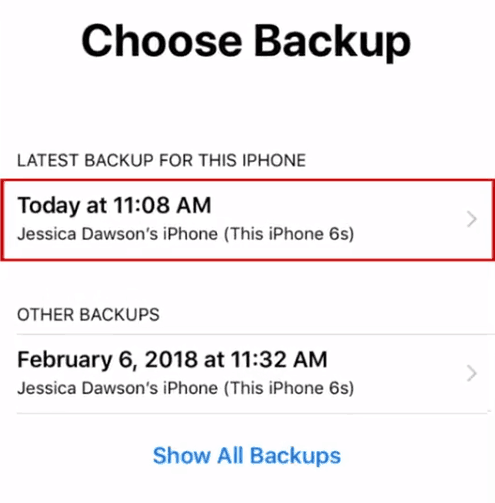 Now, select the most recent backup you just created to load that data to your new device.
